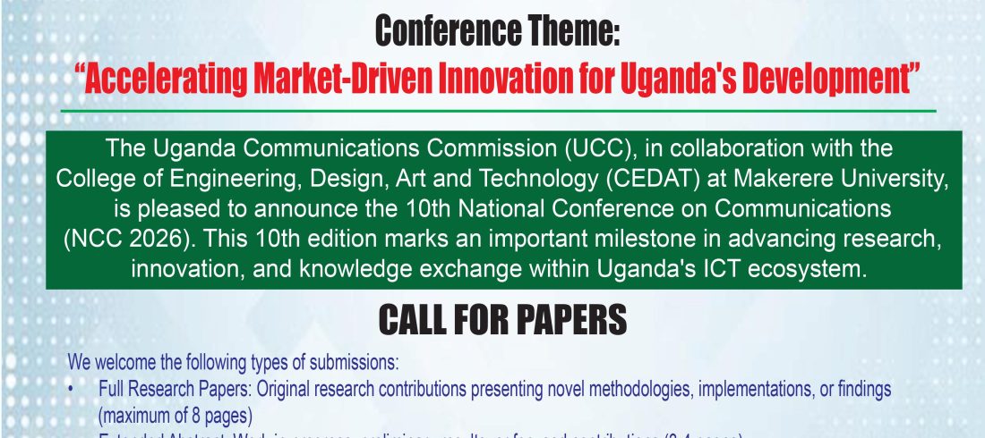 The 10th National Conference on Communications (NCC 2026) is officially here, hosted by the College of Engineering, Design, Art and Technology (CEDAT) at Makerere University in collaboration with the Uganda Communications Commission (UCC). This milestone edition, themed “Accelerating Market-Driven Innovation for Uganda’s Development,” serves as...Read More